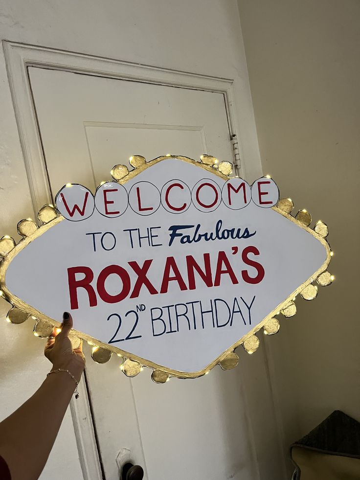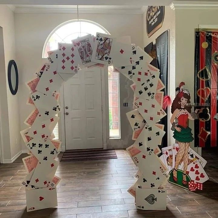 Le matériel : Un cadre doré, un fond imprimé façon tapis de jeu ou rempli de cartes étalées, et une belle typographie pour souhaiter la bienvenue (ou un joyeux anniversaire).